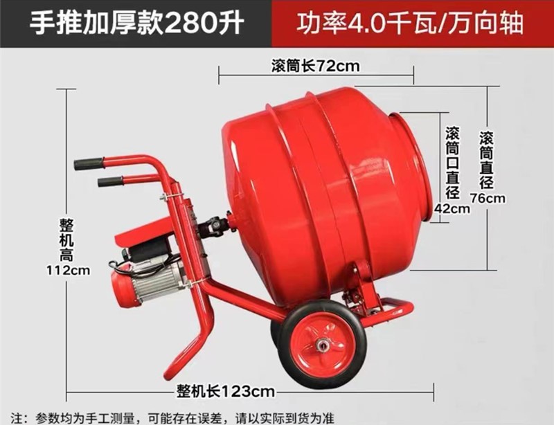 手推臥式小型攪拌機有280升、350升、400升、600升、800升共5種規(guī)格。