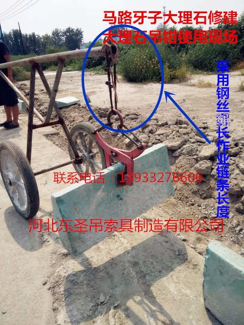 查看詳情說到大理石板吊具,常見吊具為柔性吊裝帶吊裝,柔性索具吊裝,如鏈條或尼龍繩等柔性吊裝工具,這些柔性吊裝索具存在一個共同特性:簡單易操作,原理簡單,但存在一個共同致命缺點,由于柔性索具吊裝屬于軟性吊裝且與異性石材接觸面積小,因此存在吊裝重心容易在起重吊裝過程中傾斜,導致異性石材出現(xiàn)重心偏移傾倒現(xiàn)象發(fā)生,